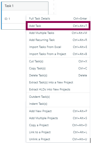 Otherwise, you can right click on the task you want the new task to fall beside and click Add Task.