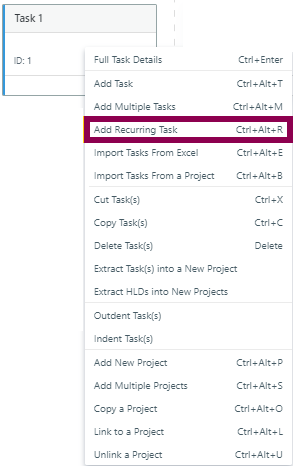 - Right click the task you wish to add multiple tasks to and select “Add Multiple Tasks”.