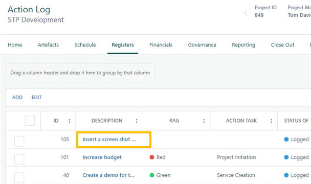 Links can be created between register entries and other registers and tasks. This allows for a model where, for example, an entry in a change register requires one or more actions to be completed.