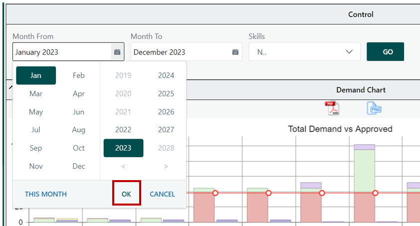 Use the control panel at the top of the dashboard to select the “Month From” and “Month To” you want to view.