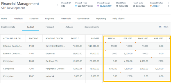 If you are looking at multiple projects at programme level, then this is powerful because it lists the costs for each project. (*This is covered in detail in the Programme Dashboard document.)