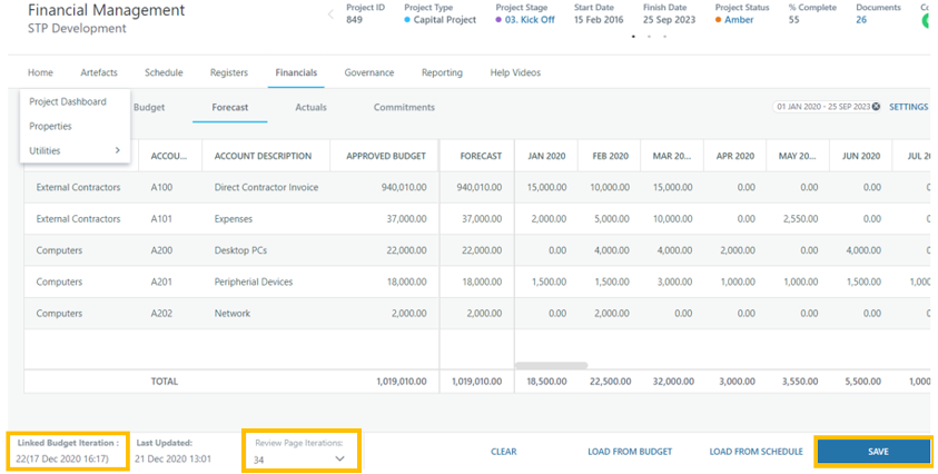 Once the Budget has been approved for the project, the “Approved Budget” values are transferred to the Forecast screen.