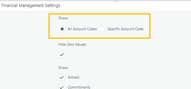 The new settings options for Financial Management also include an option to ‘Hide rows with no data’. Checking this option will suppress the display of any account codes that do not contain any values.