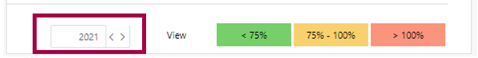 Note: You can change the financial year using the scroll box at the bottom on the widget.
