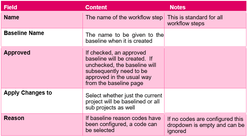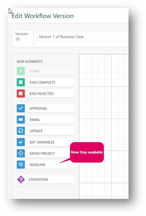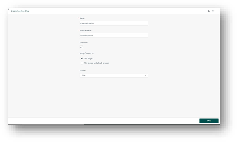 When configuring a workflow of type baseline approval, variables are now available that return: