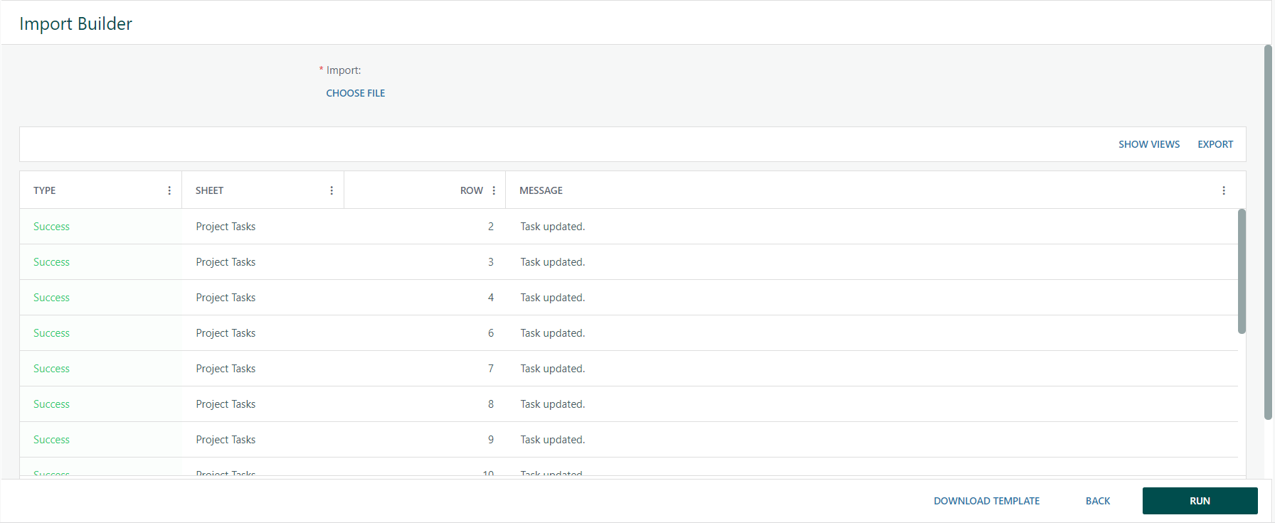 The Import Builder enables a user to build and share custom import template that can be used to create new project(s) or add/update information on existing project(s). The following information can be imported: