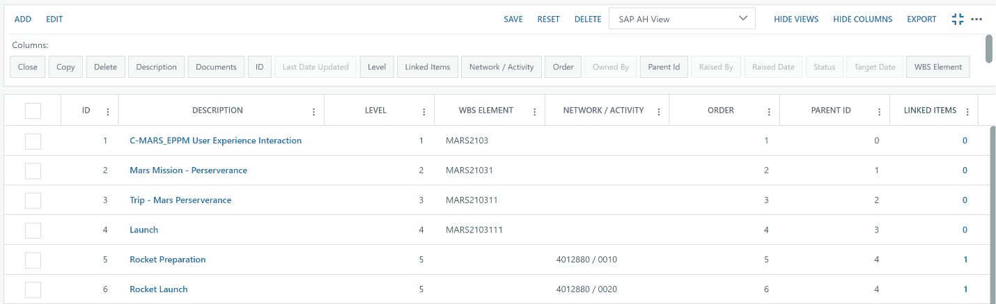 Example below is a representation of a five level SAP Project alternative hierarchy type register.