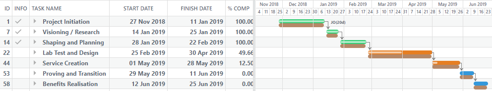 Throughout the project life-cycle, it is recommended that the user takes regular baselines to allow comparisons against the original planned schedule. Different Baselines can then be compared to track the level of progress made over a particular time frame.