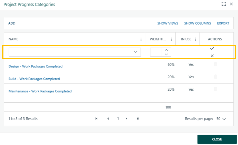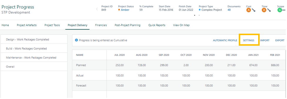 Once Progress has been configured it is then available on Projects as Project Progress.