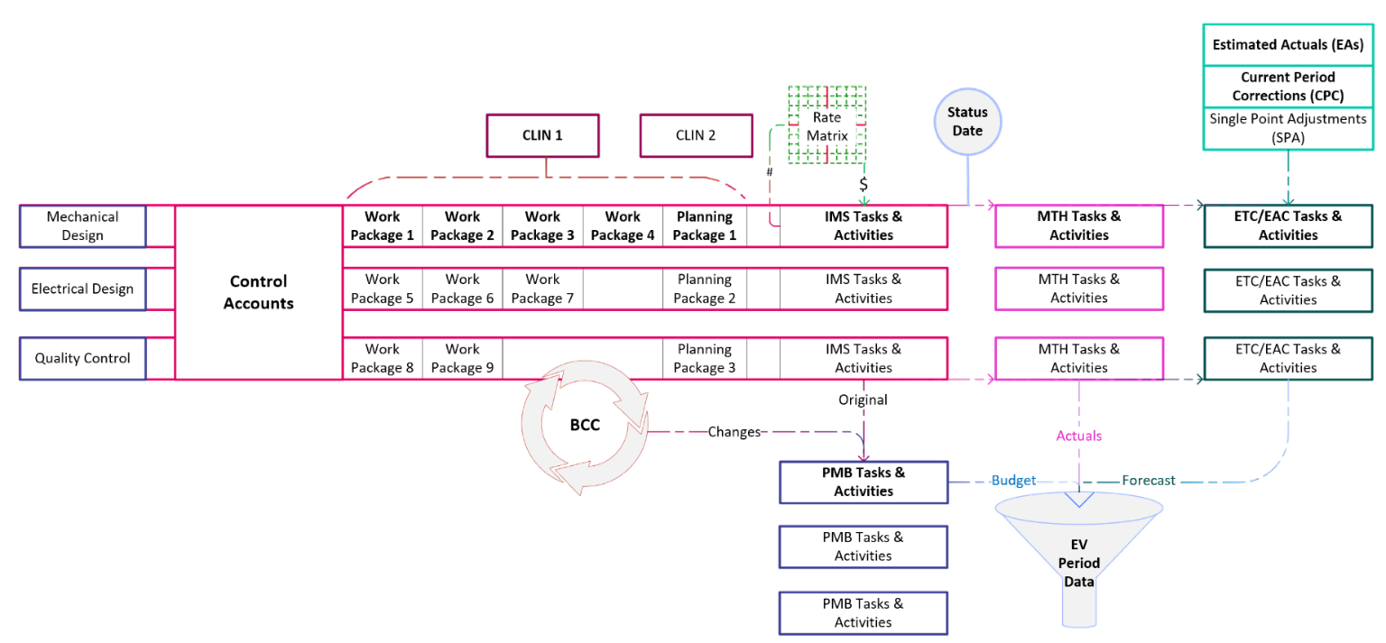 EVM: A methodology for managing programs by integrating scope, schedule, and cost with inherent risks and opportunities to create a baseline for precise progress measurement and analysis.