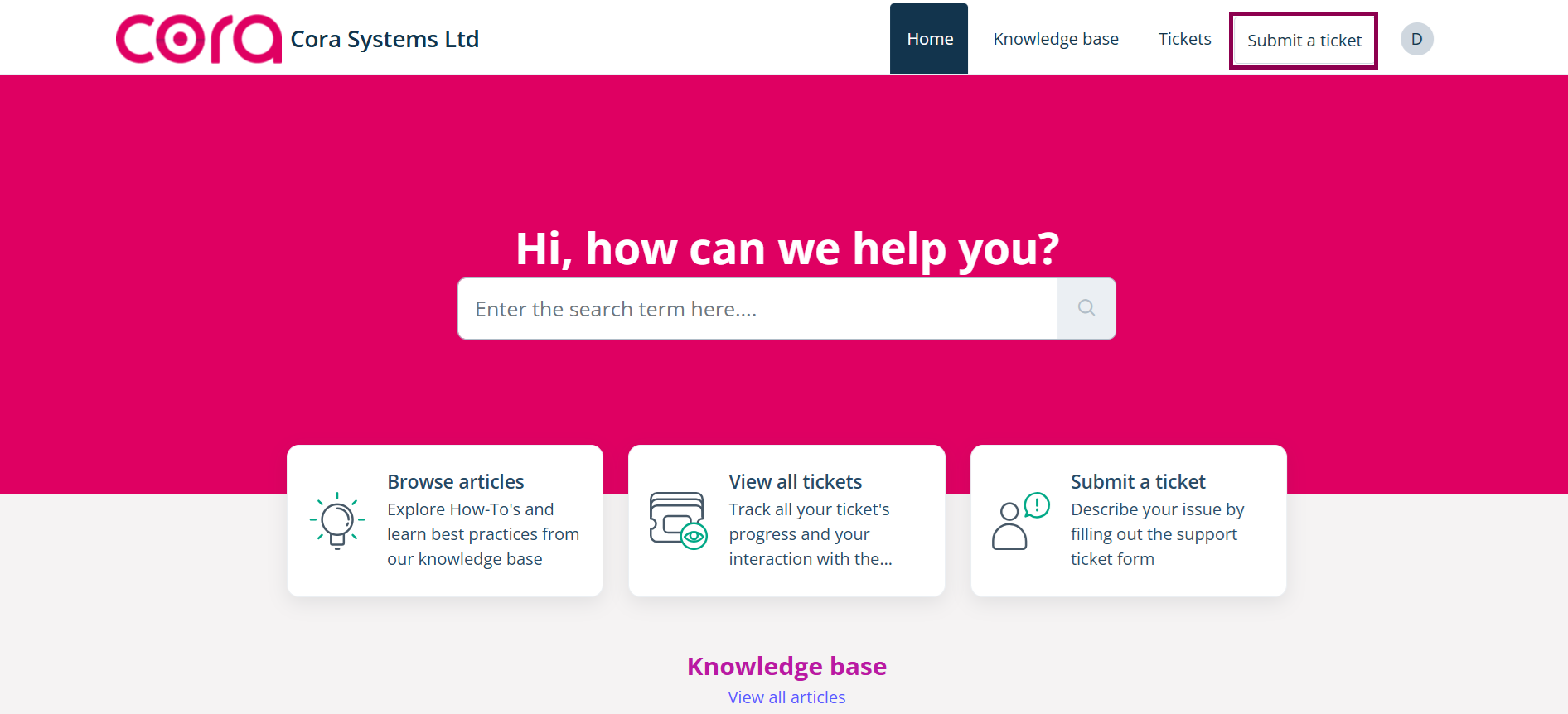 - To submit a ticket, go to the top right-hand corner of the panel and select "Submit a ticket".